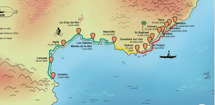 Coup de projecteur sur le Projet Azur : chaque dimanche cet été venez participer au ramassage de déchets à pied, à vélo ou en kayak sur les bords de la mer Méditerranée.