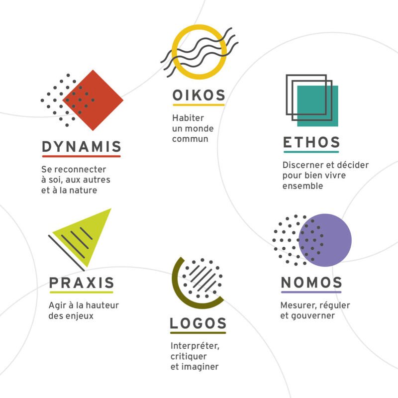 🟡 Oïkos (maison en grec ancien) mène à poser un diagnostic sur l’état de notre monde pour tenter de comprendre la situation, pour connaître nos impacts, pour estimer nos capacités.7
